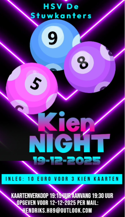 Bij HSV De Stuwkanters organiseren we regelmatig Kien avonden. Deze avonden zijn niet alleen een traditie, maar ook een uitstekende gelegenheid voor onze leden en bezoekers om hun geluk te beproeven. Of u nu een doorgewinterde speler bent of nog nooit heeft meegespeeld, voel u vrij om mee te doen! Uitsluitend voor Leden !!!